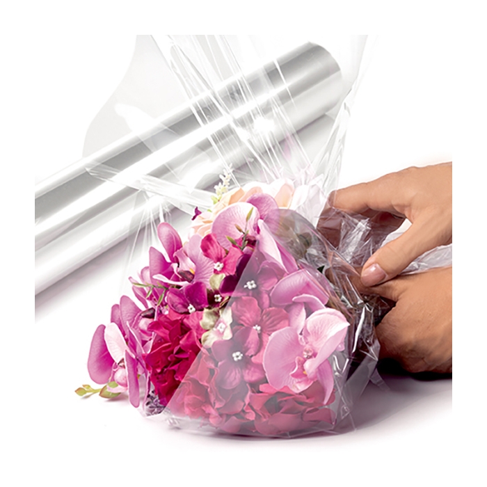 Tento celofán je vyroben z polypropylenu (PP) – jedná se o kvalitní průhlednou plastovou fólii určenou pro dekorativní balení. Nejde o původní celulózový (přírodní) celofán, ale o moderní plastový materiál, který je pevnější, odolnější a praktičtější pro balení dárkových košů.