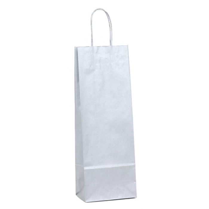 Papírová taška na víno v stříbrném matném provedení.