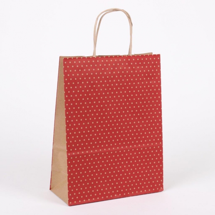 Dárková taška přírodní červená s puntíky | WrapCo